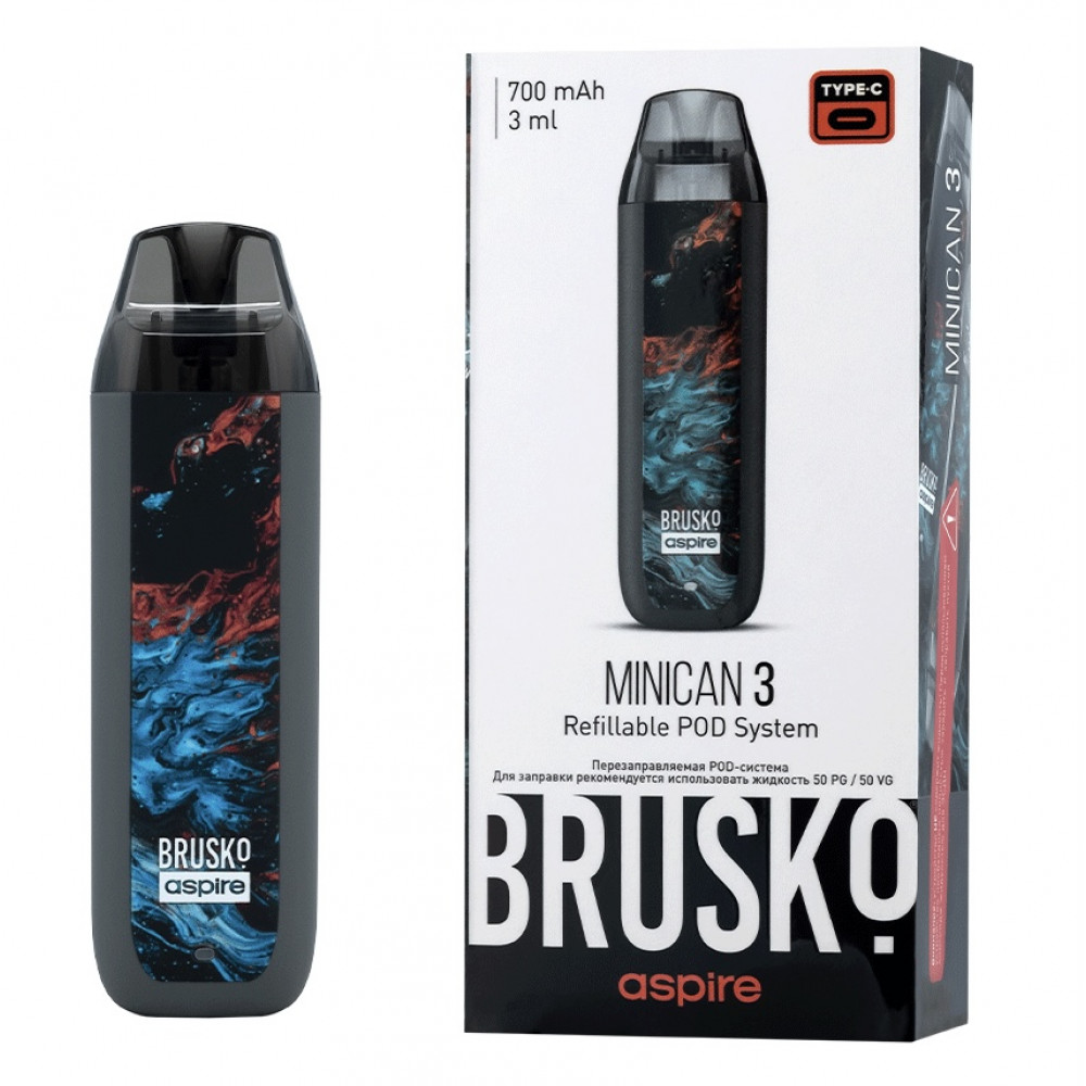 Перезаправляемая Под-Система Бруско Миникан 3 (Brusko Minican 3) 700 mah, Серый Флюид - купить в Владикавказе