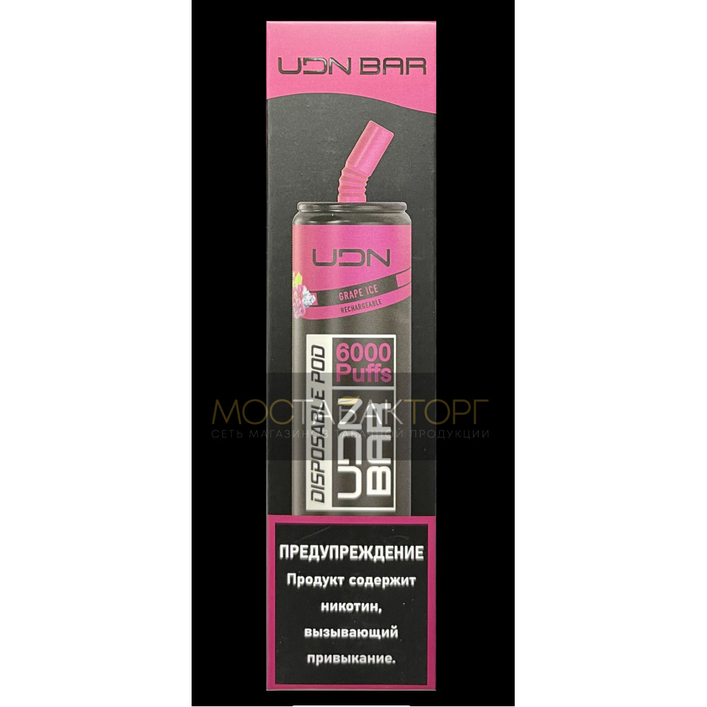 • Электронная сигарета UDN BAR Grape Ice 6000 затяжек (УДН Бар Виноград Лёд)